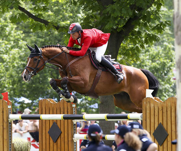 Christian Ahlmann und Lorenzo 2010 bei der DM in Münster (Foto: Julia Rau)Balve - Mit zwei tollen Nullrunden belegen Christian Ahlmann und Lorenzo (Züchter: Heinrich Österdiekhoff) nach der 1. Wertung bei den Deutschen Meisterschaften der Springreiter den zweiten Platz der Gesamtwertung.