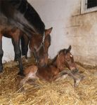 Stutfohlen von Nabab de Reve x Casall x Contender x Pilot (Foto: M. Österdiekhoff)Gestern Abend gegen 20.00 Uhr hat unsere hübsche Celine (Casall x Contender x Pilot) ihr erstes Fohlen geboren.